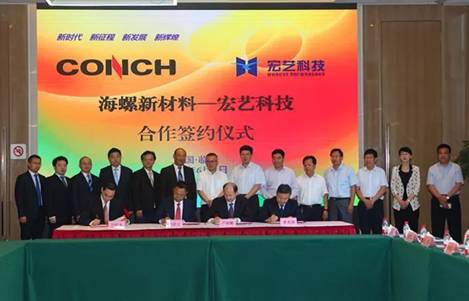 赵洪义表示,在省市各级推进新旧动能转换重大战略时刻,宏艺科技积极响应号召,做出“主业联姻海螺,资源携手城开,三方强强联合,服务地方发展”的重大决策,整合资源激活旧动能、发挥优势挖掘新潜力。公司与海螺集团经过六个多月的合作洽谈,从5月11日成立海螺新材料科技有限公司到今天顺利签约,是双方共同努力的结果。