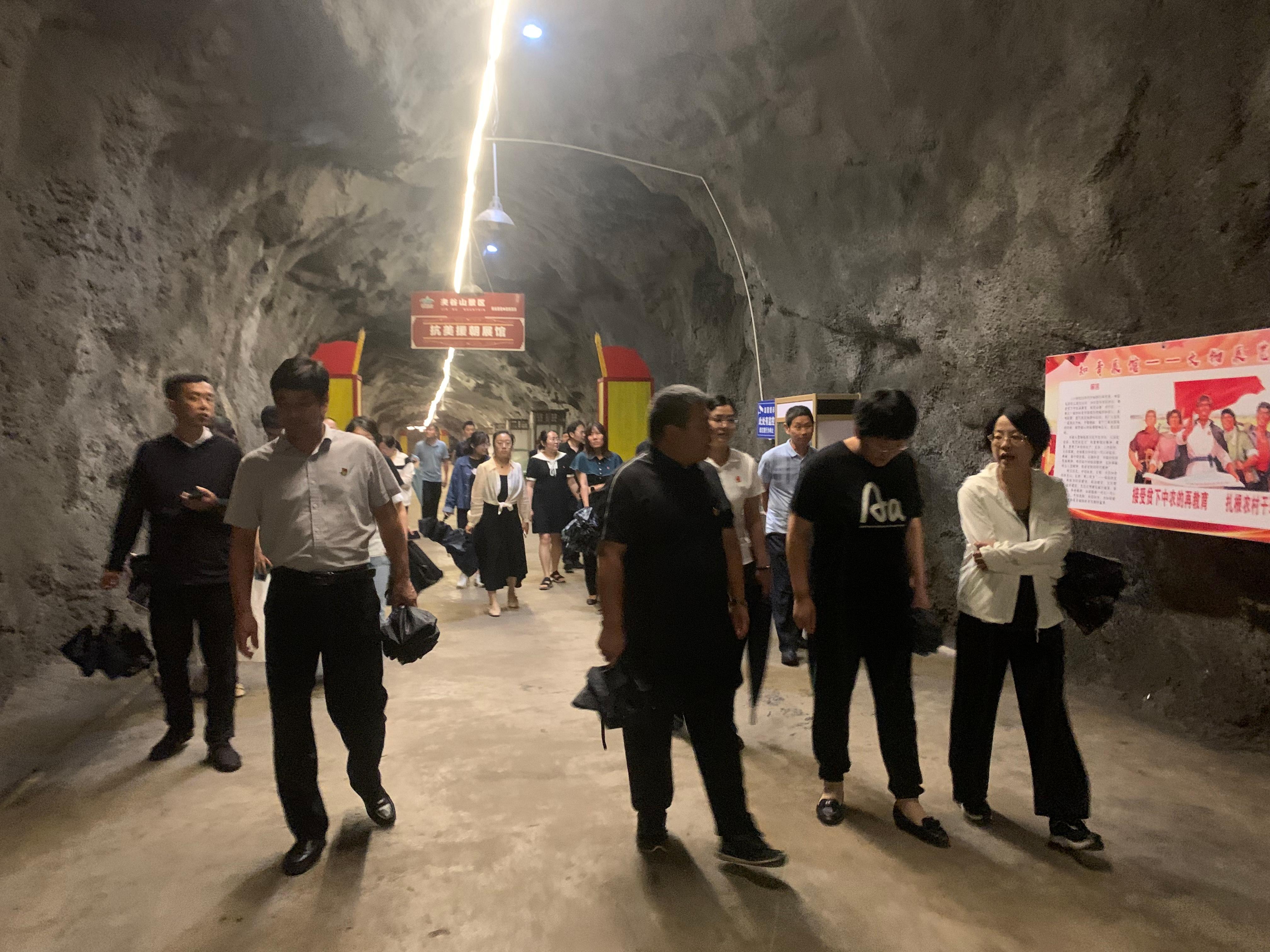 夹谷山是全国爱国主义教育基地和红色国防教育基地。夹谷山红色战备洞是鲁南苏北规模最大、保存最好的地下战备洞,贯穿于夹谷山里,全长5100米。党员们跟随解说员,参观了夹谷山战备洞,战备洞工程规模宏大、战备特色鲜明,各个厅室内以文物、文献、历史图片为载体,生动形象地展示了沂蒙革命老区的光辉历程,让党员们深受触动。