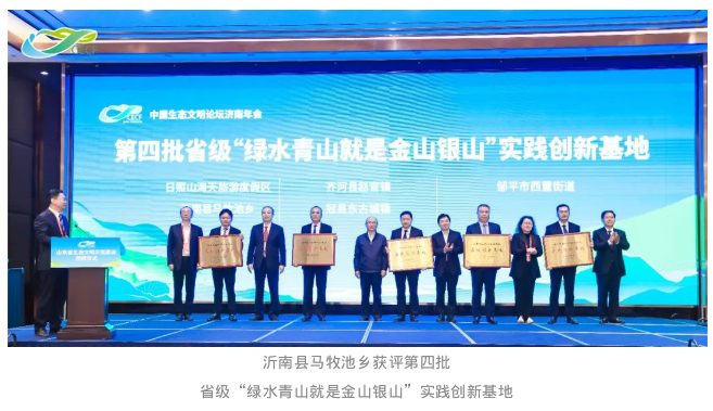 近日,山东省生态文明示范建设表彰仪式在济南举行,我市费县、沂南县马牧池乡分别获评第四批省级生态文明建设示范区和第四批省级“绿水青山就是金山银山”实践创新基地称号。