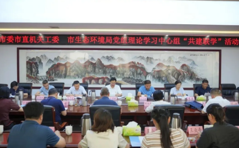 6月14日,市委市直机关工委、市生态环境局赴费县开展党组理论学习中心组共建联学活动,调研交流费县生态环境保护工作情况。