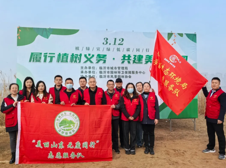 挥锹播绿织锦绣,培土育林谱华章。3月12日植树节当天,市生态环境局组织“美丽山东 无废同行”志愿服务临沂分队志愿者前往河湾公园开展义务植树活动,以实际行动践行绿色发展理念,为城市生态环境建设贡献力量。