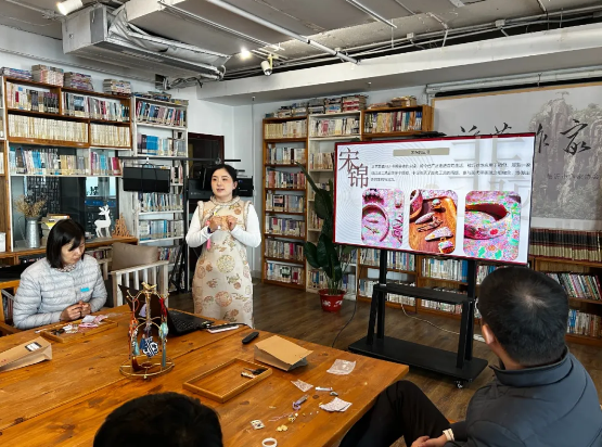 在非遗手作环节中,大家在老师的指导下,共同制作了寓意吉祥的宋锦福禄挂件。宋锦作为世界级非物质文化遗产,其天然原料与环保工艺体现了传统生态智慧。青年们在一丝一缕的编织中,感受传统工艺的精妙,也在“福禄双全”的美好寓意中,寄托对绿色生活的美好向往。