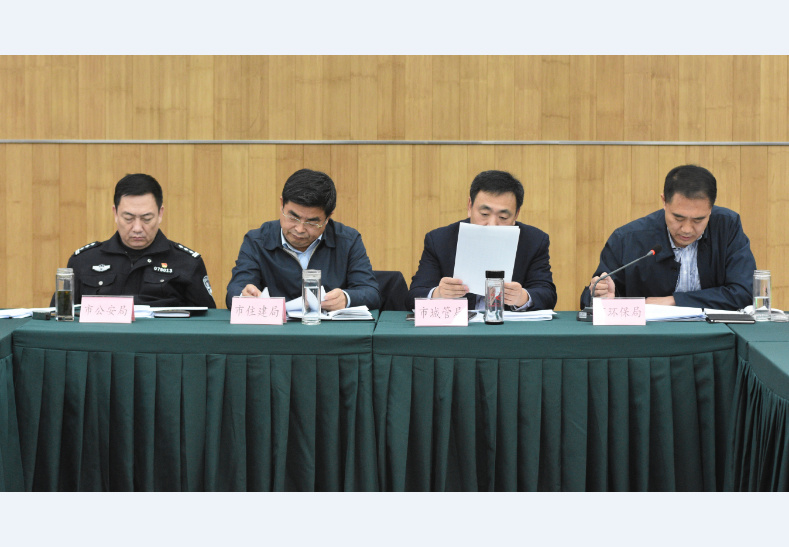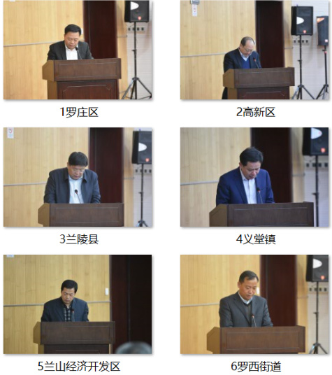 市公安局、市住建局、市城管局、市环保局、市节能办作汇报发言,罗庄区、高新区、兰陵县和兰山区义堂镇、兰山经济开发区、高新区罗西街道作表态发言。各县区政府、开发区管委会主要负责人,蒙山旅游度假区管委会主要负责人;市直29个部门、单位主要负责人;市辖35镇街党委书记参加会议。
