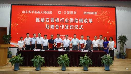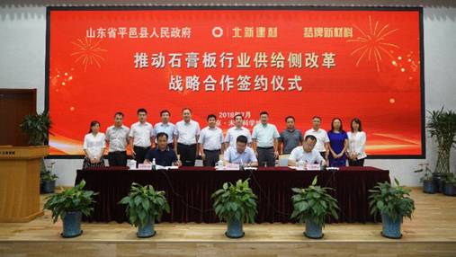 7月13日,平邑县人民政府与北新建材、梦牌新材料在北京举行推动石膏板行业供给侧改革战略合作签约仪式。该项目的签约有助于加快推动平邑建材行业转型升级,推动平邑建材产业高质量发展。