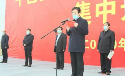 “平邑新材料国际产业园开工----”2月21日上午10点,随着平邑县委书记包华一声令下,新材料国际产业园内机器轰鸣,铲下新春开工第一铲土,全县9个现场20个重点项目同步开工,这既是平邑县招商引资、项目建设工作成果的一次集中展示,也是贯彻落实临沂市委、市政府“重点工作攻坚年”“重大项目突破年”双年行动的具体实践。在县级主会场出席开工仪式的有县领导包华、陈士贤、夏成光、孙伟及投资方代表、施工企业人员,包保项目的县级领导分别在各分会场参加开工仪式。
