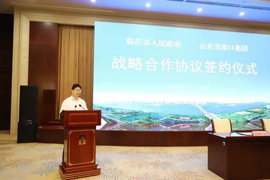 霍高原在致辞中简要介绍了山东省港口集团的发展情况。他表示,以此次签约为契机,山东省港口集团将充分发挥自身优势,秉持“与临沂市委市政府关系更加密切、融入临沂经济社会发展程度更加深入、对临沂经济增长贡献更加突出”的理念,依托临沂市国家物流枢纽中心城市的区位优势,以港产城融合发展为平台,加快推动临沂市新旧动能转换和高质量发展。