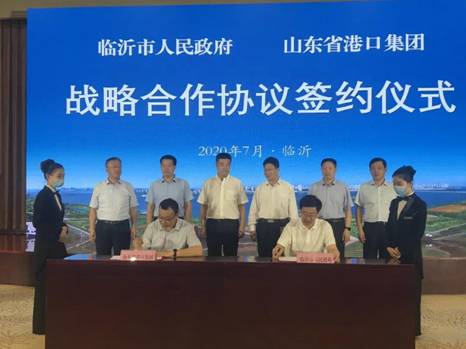 7月22日上午,临沂市人民政府与山东省港口集团有限公司战略合作协议签订仪式举行。山东港口集团党委书记、董事长霍高原,山东港口集团党委副书记、董事、总经理李奉利,山东港口集团董事会秘书、办公室主任刘志国,山东港口陆海国际物流集团党委书记、执行董事、总经理李武成,市委副书记、市长孟庆斌,市委常委、常务副市长侯晓滨,市政协副主席、临沂商城管委会主任李宗涛,市政府秘书长解红日,市政府副秘书长王鑫出席。孟庆斌、霍高原分别致辞。
