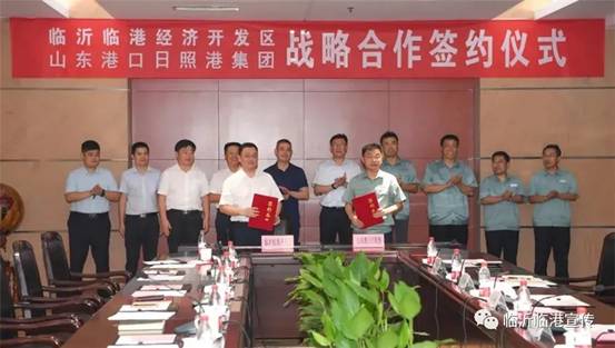 8月10日上午,临沂临港经济开发区与山东港口日照港签署战略合作协议。山东港口日照港党委书记、董事长张江南,临沂临港经济开发区党工委副书记、管委会主任黄慧林,山东港口日照港党委副书记、董事、总经理牟伟出席。临沂临港经济开发区党工委委员、管委会副主任赵月峰,山东港口日照港常务副总经理高健代表双方签约。