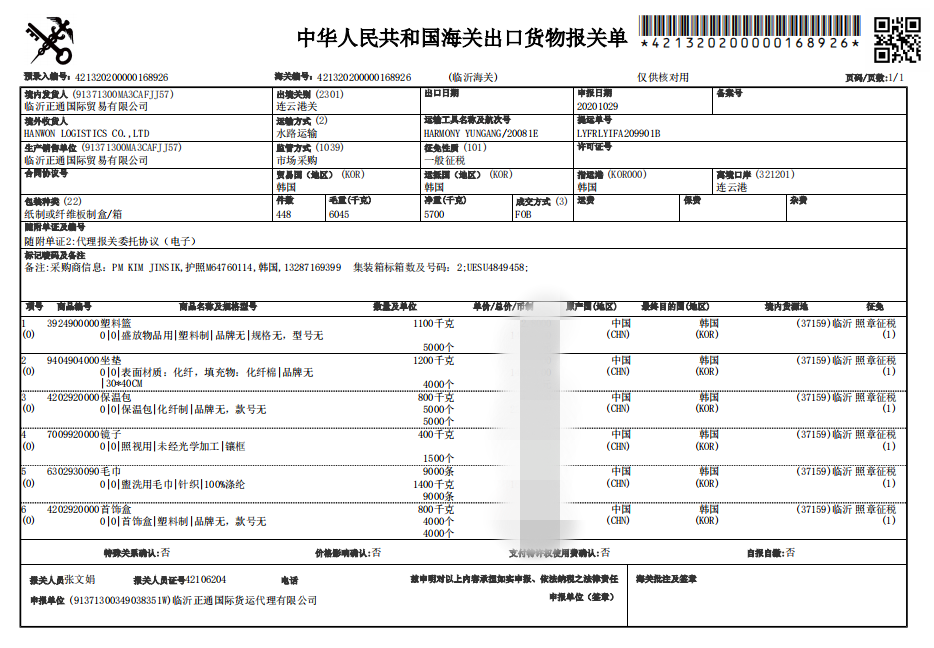 近日,临沂正通国际贸易有限公司代理出口到韩国的一批塑料制品、化纤制品、针织品等货物,以市场采购贸易方式,在临沂市场采购联网信息平台完成申报和山东“单一窗口”报关后,获准从连云港离岸。
