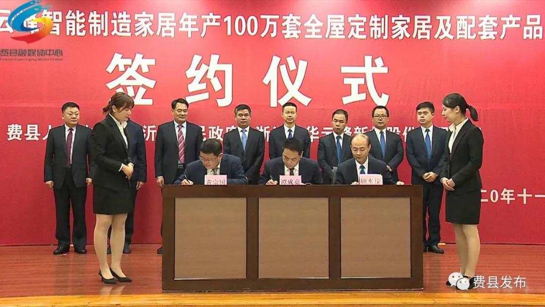 仪式上,费县人民政府、探沂镇人民政府、浙江升华云峰新材料股份有限公司就年产100万套全屋定制家居及配套产品项目进行了签约。