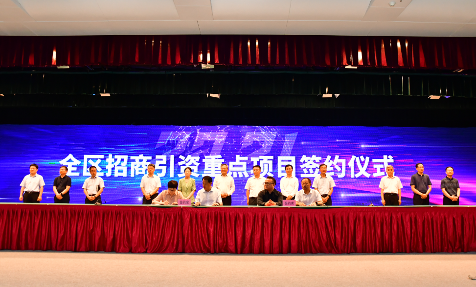 在重点招商项目签约仪式上,罗庄区政府与与罗欣药业喷雾剂项目、临沂国森环保科技制造项目、罗庄经济开发区环保科技装备定制化项目、抖音电商直播基地项目、临沂中车配套生产基地项目、高端装备智造及汽车模具生产建设项目、中开嘉华(临沂)5G铁塔总部经济项目代表签约。