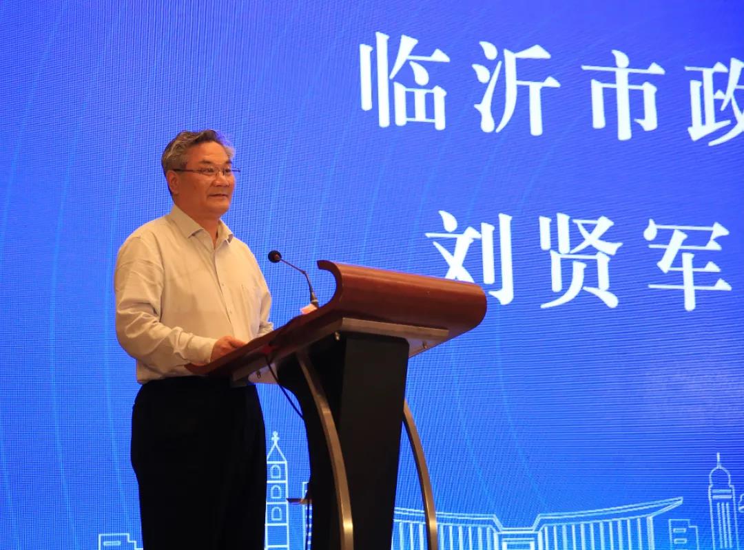 市政府副市长刘贤军出席推介会并致辞。他在致辞中介绍,临沂底蕴深厚、灵动美丽,认真践行新发展理念,谋划了“八个第一方阵”、“六强六富六精”的发展蓝图,产业布局合理、项目招引有力、发展潜力巨大。临沂已由昔日革命老区发展成全国闻名的商贸物流中心,加快“由大到强、由美到富、由新到精”的战略性转变。今日临沂,正在加快培育“十优产业”,实施“乡村振兴”,提升“城市能级”,打造“对外开放新高地”。这次推介会借助2021年跨国公司领导人青岛峰会平台,进一步展示临沂扩大开放的态度和诚意,促进各方深入交流合作,期待企业家们走进临沂、关注临沂、投资临沂。续一把蒙山柴炉火更旺,添一瓢沂河水情深意长,沂蒙人民与各位朋友们的合作友谊一定会像蒙山沂水一样山高水长!