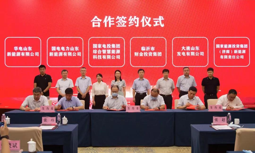 国家能源投资集团(济南)新能源有限责任公司、国电电力山东新能源开发有限公司、国家电投集团综合智慧能源科技有限公司、华电山东新能源有限公司、大唐山东发电有限公司、中国电力建设集团有限公司、国家能源费县发电有限公司、华能临沂发电有限公司、山东华影新能源科技有限公司、长城证券股份有限公司、中国银行临沂分行、山东四方汽车销售有限公司等企业负责人出席仪式并签约。临沂市新旧动能转换基金公司与上海善达投资管理有限公司就“财金新能源项目基金”设立事宜签署合作协议。