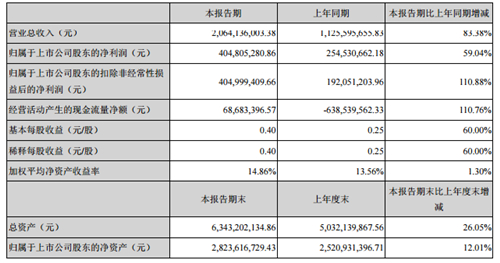 神雾环保8月23日发布上半年财务报告显示,2017年1-6月,实现营业总收入206,413.60万元,较上年同期增长83.38%;实现营业利润48,022.17万元,较上年同期增长77.61%;实现利润总额47,998.33万元, 较上年同期增长70.77%;实现净利润40,553.27万元,较上年同期增长59.30%;归属于上市公司股东的净利润40,480.53万元,较上年同期增长59.04%……