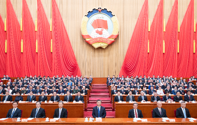 习近平、李强、赵乐际、蔡奇、丁薛祥、李希、韩正等在主席台就座。