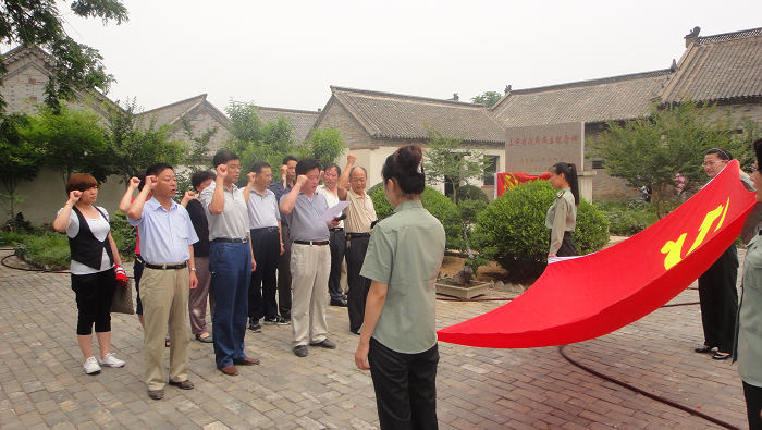 在省政府旧址,举行了重温入党誓词活动。全体党员面对着鲜红的党旗进行了庄严宣誓。