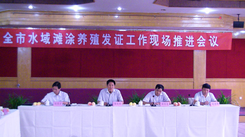 会上,费县水产局、莒南县水利局作了典型发言,详细介绍了养殖发证登记工作的具体做法、经验和成效;郯城、蒙阴、兰山等13个县区(开发区)进行了汇报交流;组织参观了费县养殖发证工作现场、档案资料管理等,现场演示、讲解了养殖发证工作申请、受理、核查、登记、系统录入、发证等工作流程及注意事项;市渔业局调研员杨永林同志代表局党组作了重要讲话;市水域滩涂养殖发证登记工作领导小组通报了全市近期养殖发证登记工作进展情况及存在的主要问题;费县人民政府副县长孙百亮同志到会祝贺并致辞。