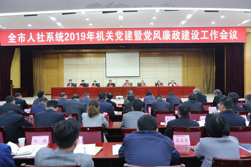4月4日上午,市人社局召开全市人社系统2019年机关党建暨党风廉政建设工作会议。会议主要任务是学习贯彻市纪委十三届四次全会和全市机关党的工作会议精神,总结工作,安排部署2019年党建工作任务。市委组织部副部长、市人社局党组书记、局长曹德玉,市纪委市监委派驻六组副组长姜荷出席会议并讲话,市直机关工委韩奎清书记到会指导。局党组成员、副局长王君川主持会议,局领导班子成员李新乐、李明、刘海涛、余永忠出席会议。局副县级以上领导干部,各县区人社局主要负责同志,党的建设工作分管负责同志、机关党务工作者;就业创业工作分管负责同志、业务科室负责人,以及市局机关各科室、局属各单位全体工作人员参加了会议。