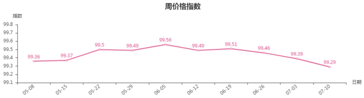 据临沂商城价格指数信息系统监测,本周临沂商城周价格总指数为99.29点,环比下跌0.10点。价格指数继续下跌走势。