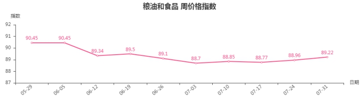 二、粮油和食品类周价格指数环比上涨