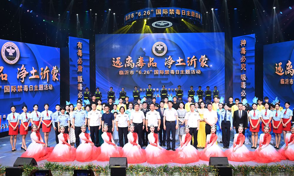 6月24日下午,由临沂市禁毒委员会、临沂市公安局主办,临沂市文化和旅游局、临沂市广播电视台、临沂市柳琴戏传承保护中心、临沂科技职业学院协办的“远离毒品净土沂蒙”“6.26”国际禁毒日主题活动在临沂市广播电视台演播大厅举行。主题活动分为“斩毒之剑”“戒毒之路”“防毒之墙”“无毒之愿”四个篇章,通过歌曲、舞蹈、相声、快板等形式为现场观众献上精彩的文化盛宴,让“健康人生、绿色无毒”理念更加深入人心,让人民群众远离毒品之害,让禁毒的主旋律响彻蓝天下、花海间。伴随着歌舞《蓝天下花海间》的徐徐展开,历时90分钟的主题活动落下帷幕。护航高质量发展,禁毒在行动。新的征程上,临沂公安局禁毒队伍将紧密团结在以习近平同志为核心的党中央周围,深入学习宣传贯彻党的二十大精神,在市委市政府的坚强领导下,坚决打赢禁毒人民战争,全力开创沂蒙无毒净土,为推动临沂“走在前、进位次、提水平”创造良好的社会治安环境。