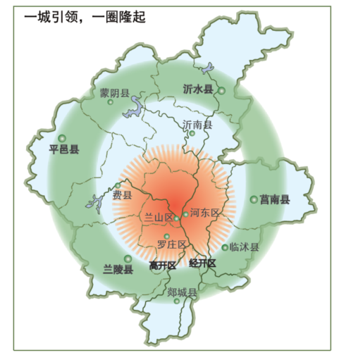 即临沂城区,包括兰山区、河东区、罗庄区、经开区、高新区、临港区,要发挥城市在交通、经济、人口等区位优势,聚集优质资源,促进产业集群发展,重点建设医养健康产业园、健康产品采购分拨中心、温泉休闲度假区等,打造产业聚集发展核心区,发挥核心的聚集和带动作用。