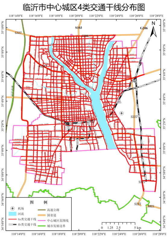 2.临沂市中心城区4类交通干线分布图